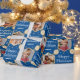 Make your holiday gifts extra special with custom photo wrapping paper! This editable template is personalised with four of your favourite photos, and the recipient's name, your family name, or the holiday year. It features hexagonal picture frames, set against a festive background of snowflakes and stars, along with the phrase "Happy Holidays". A stylish design pairing traditional typography with a classic geometric design. Perfect for photos of kids, family, friends, and pets! This seamless pattern gift wrap is available with a matte or glossy finish. Printed colours: blue, white, and a gold colour.