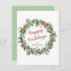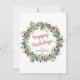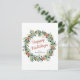 A simple yet elegant Christmas greeting card with poinsettia, and christmas leaves in a wreath.