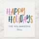 Happy Holidays Cute Colourful Playful Typography Personalised Greeting and Name Holiday Wine Label