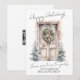 These beautifully crafted cards feature a charming watercolor illustration of a festively adorned front door, complete with a Christmas wreath and trees. The design is accented by the words "Happy Holidays" in elegant script typography, perfectly capturing the spirit of the season. These cards are the ideal way to send thoughtful holiday greetings and express gratitude to your clients, employees, and customers.