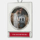 Transform your favourite holiday photo into a radiant keepsake with this silver plated metal ornament. The customisable photo space allows you to display a special memory that will shimmer and sparkle on your holiday tree for years to come. With the word "Happy" taking centre stage in the greeting, this ornament is all about celebrating the joy of the season. As it catches the light and glistens, it serves as a reminder of the happiness and love that this time of year brings.