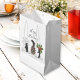 This design features three penguins among various symbols of the winter season: a snowflake, pine cone, and holly. The humourous animal illustration with personalised text makes a cute funny and unique gift bag.