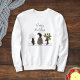 This design features three penguins among various symbols of the winter season: a snowflake, pine cone, and holly. The humourous animal illustration with personalised text makes a cute funny and unique sweatshirt.
