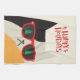 NewParkLane - Christmas Kitchen Towel for cat lovers, featuring a cute and cool tabby cat cartoon, wearing sunglasses, with a Happy Holidays wish in fun, red, script typography.