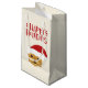 NewParkLane - Sweet Christmas Gift Bag for dog lovers, featuring a cute Yorkshire Terrier cartoon, wearing a Santa hat, with a Happy Holidays wish in fun, red, script typography.