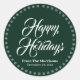Happy Holidays dark green custom script name cute Classic Round Sticker