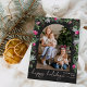 Happy Holidays Dark Grey Pink Greenery Arch Photo Holiday Card