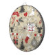 Seamless Happy Holidays design Christmas symbols - snowflakes, deer, calendar, Christmas tree, Christmas gift, skate, hearts, Christmas ornament, Christmas stocking, ribbon - decoration on grey background