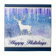 Original watercolor painting by Sandra Gale featuring a white deer silhouette standing majestically among icicles and snow. Especially perfect as an alternative to a Christmas card, concentrating rather, on the magic of the winter holiday season.