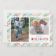 This colourful Christmas card features a modern striped background. Watercolor stripes in the colours of teal, red and gold appear in a crossed diagonal pattern. Personalise this multi coloured holiday card with 2 of your family photos and your name and year.