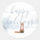 Happy Holidays Elegant Script Winter Fox Classic Round Sticker