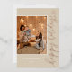 Festive personalised Holiday greeting card with "Happy Holidays" in gold foil calligraphy script and your photo and family name of choice. Two shades of beige cream on the back and for the modern snowflake pattern on the back. Fully customisable text elements so you can make all the changes you like. Pick gold, rose gold or silver foil to match your photo.