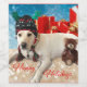 Happy Holidays Festive Cute Dog with Antlers Wine Label