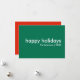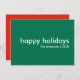 Simple, stylish "happy holidays" quote greeting card with modern typography in white on a rich green background in a minimalist 'scandi' scandinavian design style. The card can be easily personalised with your own holiday greeting, family name and year to make a truly bespoke christmas holiday card for the festive season! The back of the card is in a complementary bright red for a fun festive feel.
