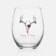 Happy Holidays Floral Reindeer Skull Bull Skull Stemless Wine Glass