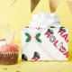 Simple red chunky text reads "Happy Holidays". I've added cycling icons (helmets, bikes, chains, gears, water bottle) to replace letters.