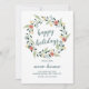 Invite your friends and loved ones to come over in your new home this Christmas with this simple yet elegant happy holidays Christmas invitation with greenery and floral wreath.