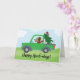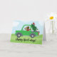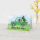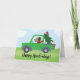 A funny dog is driving a pick up truck on a pretty day with a Christmas tree in the back. A red bird is perched atop enjoying the ride. Bones are piled around the tree. The dog looks very excited as the coming “howl-i-days”! Humourous card to send this holiday season.