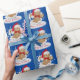 Christmas gingerbread man with Santa Claus cap in white milk splash on blue background with Happy Holidays text.