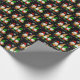 Festive black, red and green hand drawn cartoon gnomes and snowflakes Happy Holidays Christmas gift wrap.