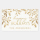 Happy Holidays Gold Shimmer Holly Branches Rectangular Sticker