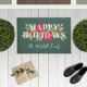 Happy Holidays Green Christmas Floral Family Name Doormat