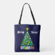 Happy Holidays Green Christmas Tree: Dark Blue Tote Bag