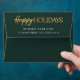 Create your own custom business Christmas card return address envelopes featuring your company mailing address and elegant gold happy holidays on green colour background.