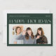 Elevate your corporate holiday greetings with this "Happy Holidays" card, designed for spreading cheer and fostering a sense of unity. The front features a sleek "Happy Holidays" message set against a backdrop of dark green, providing the ideal canvas for a long horizontal photo—perfect for showcasing your team's camaraderie. Turn the card over, and you'll find ample space for two additional photos capturing memorable moments, along with a short, personalised message.
