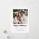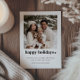 This holiday card design showcases a clean and modern layout with a square photo space for your family's image. Beneath the photo, 'happy holidays' is elegantly displayed with a small heart detail, adding a touch of warmth. Your wishes and family name are beautifully set underneath in two contrasting fonts, creating a stylish yet minimalistic seasonal greeting. All of the text in this design is customisable so that you can edit it to suit you.