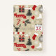 Seamless Happy Holidays design Christmas symbols - snowflakes, deer, calendar, Christmas tree, Christmas gift, skate, hearts, Christmas ornament, Christmas stocking, ribbon - decoration on grey background
