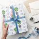 Add your business logo to this stylish Christmas topiary wrapping paper design. Lollipop Topiary in a "ginger jar" style planter with a blue and white bow, all handpainted by yours truly then arranged digitally into a repeating pattern. This design would work best with a square or circular logo / monogram.