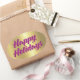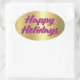 Happy Holidays Magenta Pink Glitter on Gold Oval Sticker