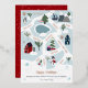 Happy Holidays! Modern Christmas map story telling illustrations featuring real rose gold foil pine trees, penguins, ice skating shoes, iced lake, houses, villages, road, mountain, cable cabin, skis, snowman and more! Add your positive sentiments, with peace and love, rejoice, joyful, hope, merriest, cherish, hugs....