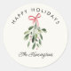 Happy Holidays Mistletoe Custom Family Name Classic Round Sticker
