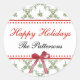 Happy Holidays Mistletoe Red Bow Custom Christmas Classic Round Sticker
