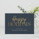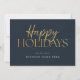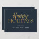 Happy Holidays Modern Blue Gold Script Business Holiday Card