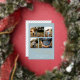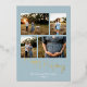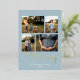 Modern Holiday card in pastel blue, customised with four images of your choice inside a delicate gold frame - real gold foil for Merry Christmas. Background colour and colour of the stripes on the backer can be changed in the design tool if you like.