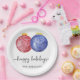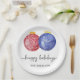 Happy Holidays Modern Red Blue Ornaments Simple Paper Plate