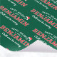 Get ready for Christmas with custom name wrapping paper! This festive design features sports jersey inspired typography, with a retro block font, a Santa hat, and stars. Personalise the template with the recipient's name, the year, plus you can customise the phrase 'Chill and be merry' with your own holiday message. This simple, stylish design is perfect for kids, teens, family, and friends! A seamless pattern gift wrap, available with a glossy or matte finish. Printed colours: dark green, red and white.