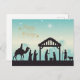 Celebrate the true spirit of Christmas with our “Happy Holidays Nativity Manger Scene” postcard. This elegant postcard features a serene nativity scene silhouetted against a tranquil blue sky that fades into white, symbolising peace and calm on this holy night. The design includes the holy family, the Three Wise Men, a shepherd with his sheep, and a guiding star shining brightly above. The phrase “Happy Holidays” is written in an elegant script, adorned with small stars to enhance the festive feel. Perfect for sending warm wishes to friends and family or as a thoughtful gift, this postcard will surely leave a lasting impression on anyone who receives it.