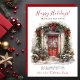 This watercolor Happy Holidays new home for the holidays announcement card with a festively decorated red front door with pine boughs and trees, a wreath, and red holiday bows would be perfect to send to your friends and family now that you have moved to a new home. The sentiment is customisable. Get enough so that everyone you know and love has your new address. They'll be so excited about your big move!