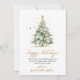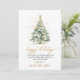 Modern Elegant Calligraphy Happy Holidays Script Christmas Tree Non Photo Christmas Cards. This festive simple minimalist Holiday cards features a watercolor christmas tree with decoration gold balls and confetti and a „Happy Holidays” greeting text which is written in a nice hand lettered font type in gold and white. On the reverse side golden glitter snow or sparkling gold confetti on dusty green background. This festive Custom Personalised Cards are a great way to remind loved ones that you're thinking of them this Winter Holiday Season.