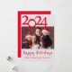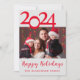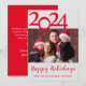 Happy Holidays Photo Christmas Card. Red and white christmas card featuring your favourite family photo to share with friends and relatives. Includes script typography and large 2024 lettering. Customise with your personal style.