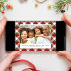 Holiday featuring your photo framed against a cheerful red, green and white seasonal plaid background. You can personalise the "Holiday Cheers & Happy New Year" greeting, your names and the year in simple typography.