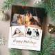 Stylish and cute holiday custom photo postcard with photo collage - insert three of your favourite holiday family or pet photos into the template. Happy Holidays text is in a trendy and modern script - personalise the text. Wish happy holidays - Christmas and New year - to your friends and family.
