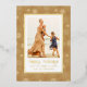 Happy Holidays Photo Gold Modern Polka Dot Foil Holiday Card Foil Stamped Christmas Cards features one of your favourite photos with the foil text overlay "Happy Holidays" in modern calligraphy script typography on a white background surrounded by a golden polka dot pattern. Personalised your names or custom text below. Perfect for family and friends to celebrate Christmas and the holidays. Designed by ©2025 Evco Studio www.zazzle.com/store/evcostudio
