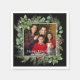This Happy Holidays Photo Wreath Greenery Christmas Napkin features a photo of your choice surrounded by a wreath with holly and berries, pine branches, pinecones, and eucalyptus, with your names and year. This makes a wonderful addition to your Christmas party.