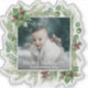 This Happy Holidays Photo Wreath Greenery Die Cut Christmas Sticker features a photo of your choice surrounded by holly with berries, pine branches, pinecones, and eucalyptus, with your names and date. This sticker is perfect for holiday gift giving!