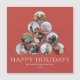 The greeting cards that your friends and family will keep and enjoy for years to come! Can't pick just one or two of your favourite family photos? These 5.25" x 5.25" refrigerator magnets feature placeholders for 10 of your favourite photos, family name and year. The photos are all round in shape, arranged in the shape of a Christmas tree. The greeting, “Happy Holidays,” is in ivory. The background is red.
